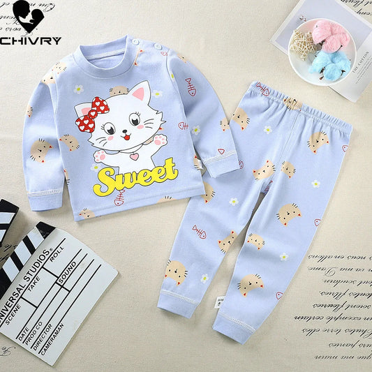 Pajama Sets Cartoon Long Sleeve T-Shirt Tops with Pants